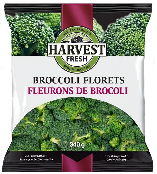 Les fleurettes de brocoli Harvest Fresh sont pratiques et polyvalentes ! Riches en nutriments, elles se cuisent rapidement : à la vapeur, sautées, en salade, ou même à grignoter seules.