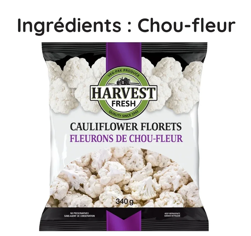 Les fleurons de chou- fleur Harvest Fresh sont pratiques et polyvalentes ! Riches en nutriments, elles se cuisent rapidement : à la vapeur, sautées, en salade, ou même à grignoter seules.